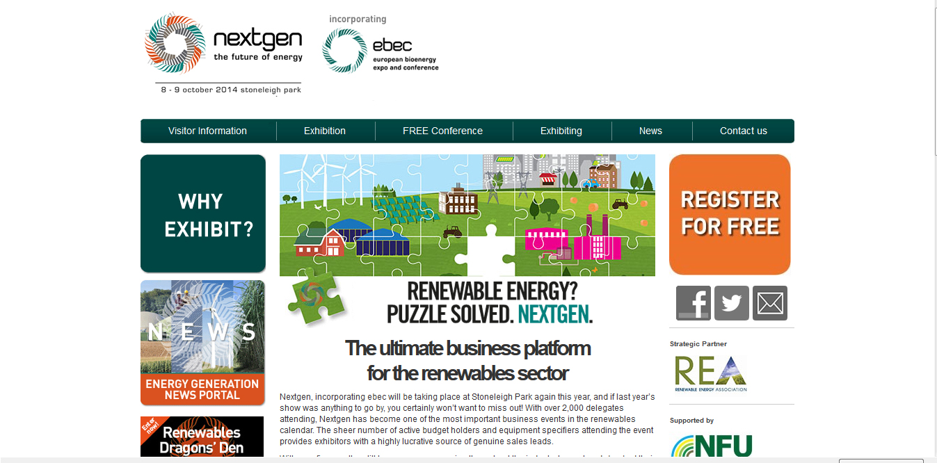 Today Rainbow Heat and Power are joining their new partners, Treco and Wye Valley Energy at the NextGen 2014 show in Warwickshire. All 3 companies are exhibiting at the show and can be found on stand B30, in the main hall.