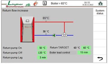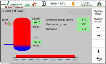 Within the control panel, you can also set the required temperatures for both the biomass boiler and the buffer tank.