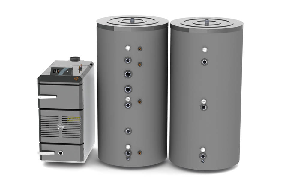 Effecta Lambda log boilers are used in in conjunction with an accumulator tank. Energy stored in the accumulator tank is then ready to be used when needed. Depending on which boiler is the right fit for your project the accumulator tank should have a 1,000, 1,500 or 3,000 litre capacity.