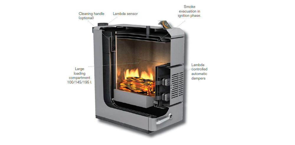 Effecta Lambda simplifies your wood firing substantially. The Lambda sensor, situated in the flue gas channel, indicates to the boiler how the combustion is running. The touch screen panel is easy to use and displays temperatures, accurately calculated to within a degree of efficiency.